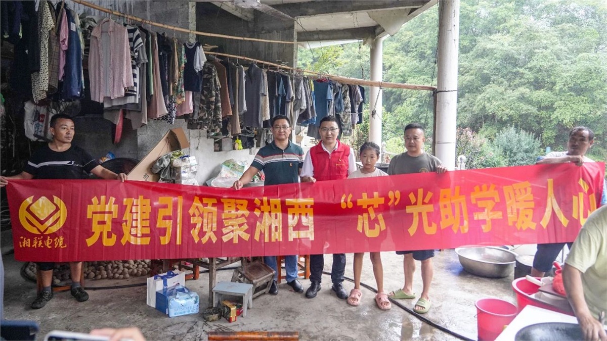 2025年8月12日,湘聯電纜“芯”光助學基金會歷經500多公里,第四次走進湖南省湘西土家族苗族自治州龍山縣苗兒灘鎮,開展“芯”光助學活動。此次活動不僅為當地10名學子送去助學激勵金、學習物資及生活用品,更發揮企業專業優勢,為村鎮基礎電力設施設備進行排查修理,以“教育幫扶+技術賦能”的雙重模式,共同續寫鄉村振興的暖心篇章。
