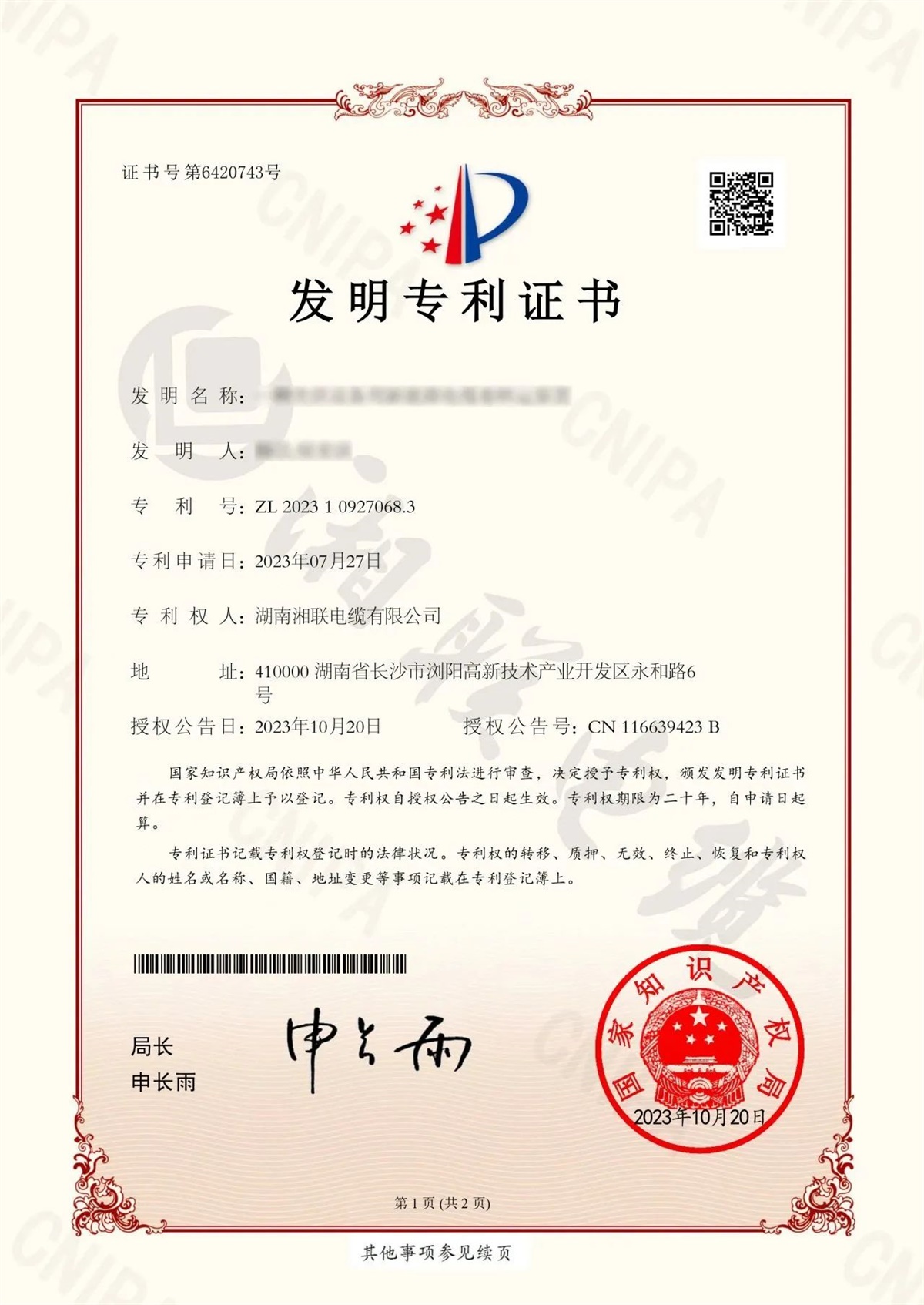 近期,經(jīng)國家知識(shí)產(chǎn)權(quán)局審核批準(zhǔn),湘聯(lián)電纜再次獲得4項(xiàng)發(fā)明專利和2項(xiàng)實(shí)用新型專利授權(quán),本次專利的申報(bào)類別廣泛,涉及電線電纜的保護(hù)、檢測、防爆等技術(shù)應(yīng)用,對(duì)線纜的精益生產(chǎn)制造具有重要作用。