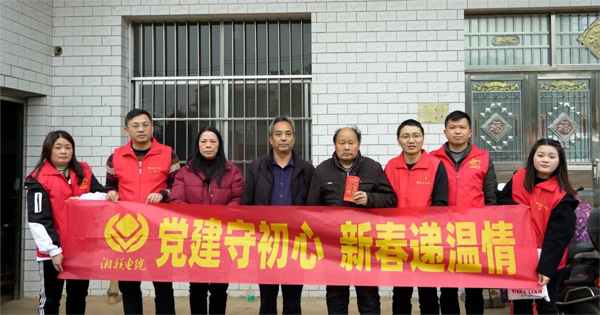 臨近春節(jié),為進(jìn)一步弘揚(yáng)黨員奉獻(xiàn)精神,踐行湘聯(lián)電纜“為社會(huì)承擔(dān)時(shí)代使命”的核心價(jià)值觀,湘聯(lián)電纜黨支部聯(lián)合周邊社區(qū)于1月29日開展困難群眾慰問走訪活動(dòng),為他們送去新春年貨和新年紅包,向他們表達(dá)節(jié)日的問候和新春的祝福。